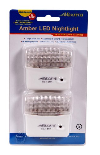 The Maxxima MLN-50A is the brightest plug-in Night Light available, with 5 Amber LEDs. This Night Light will turn on when it gets dark in your room and stay on until morning or until you turn on the main lights in your room. Comes in pack of 2